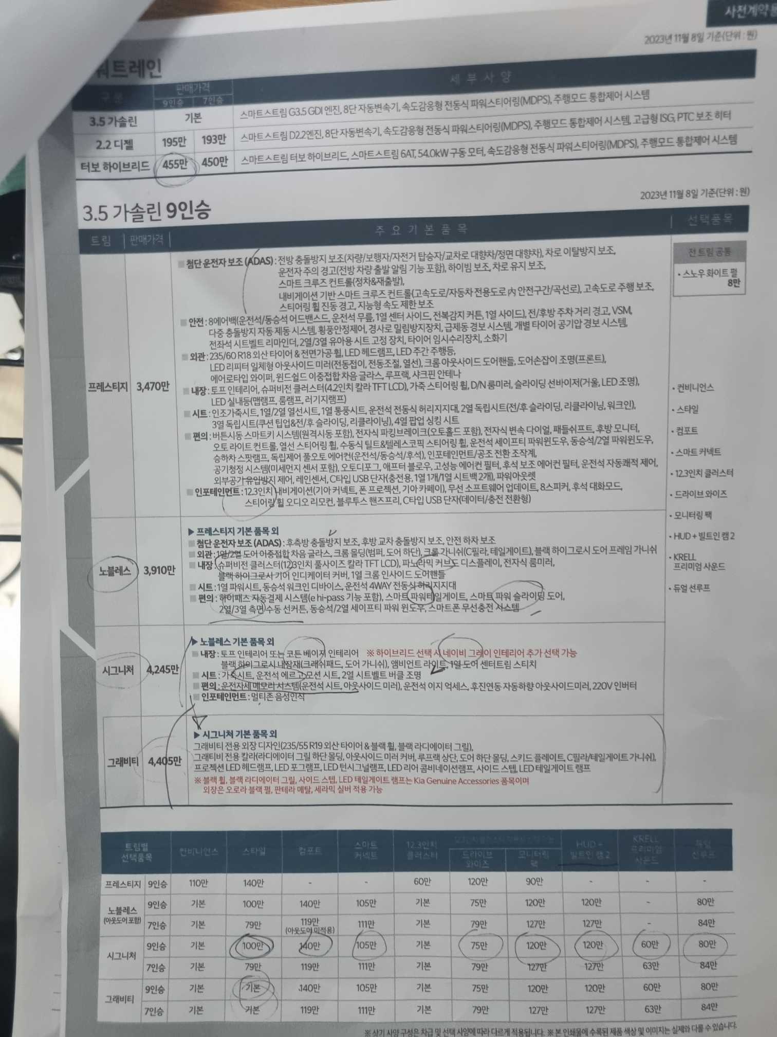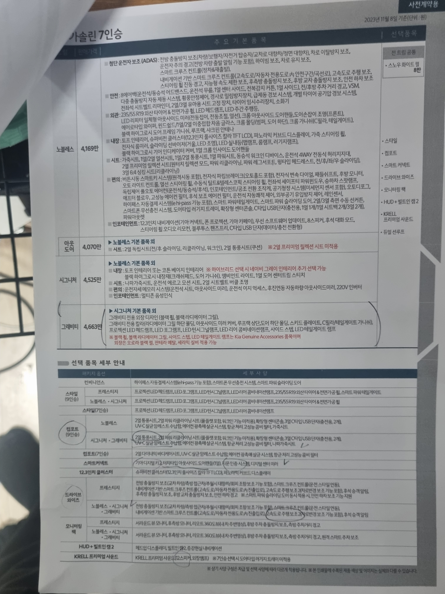 우선 기아자동차에서 받은 카탈로그와 가성비 옵션, 팩트체크까지 확인해 보자.