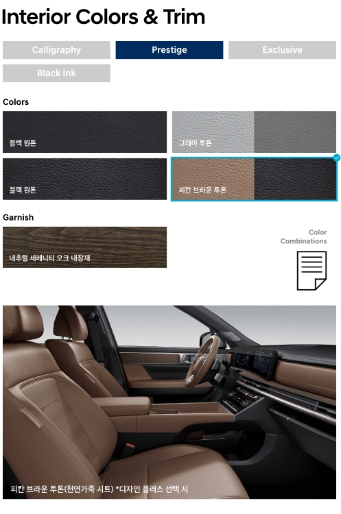 내장은 프레스티지로 했을 때 4가지 색상을 선택할 수 있습니다