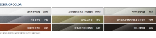 우선 외장 색상은 총 9가지로 나눠져 있습니다