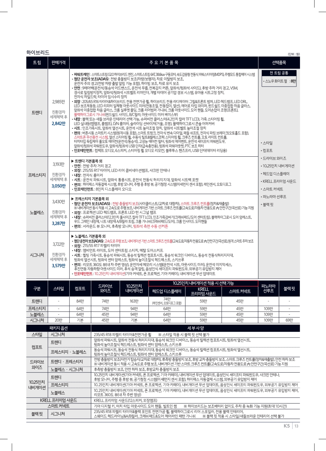 여기서 하이브리드로 고민 중이신 분들은 대략 400만 원 정도 더해주시면 될 것 같습니다