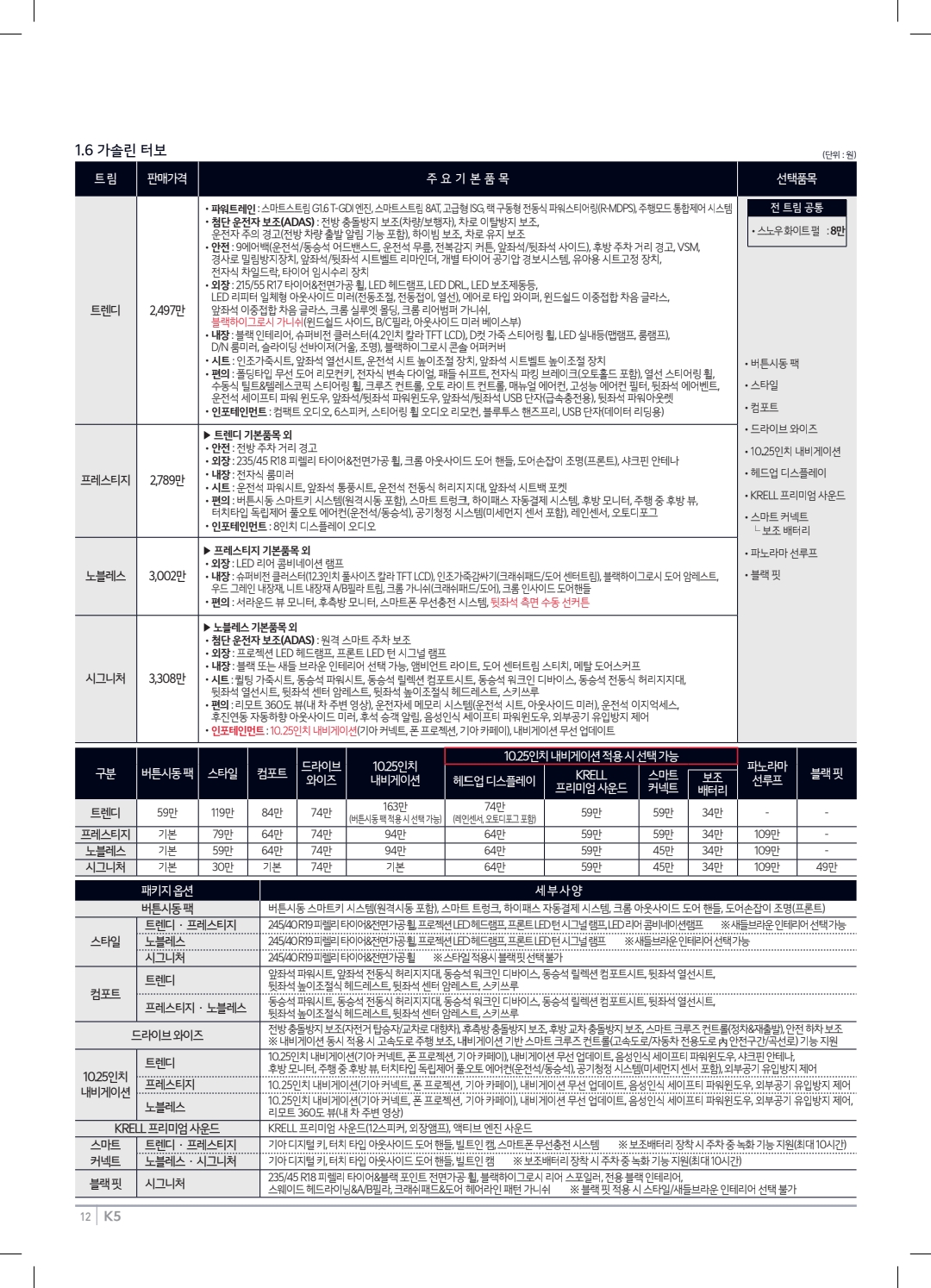 트림 : 1.6 가솔린 터보 프레스티지(2,868만 원)