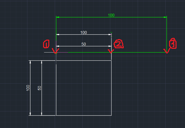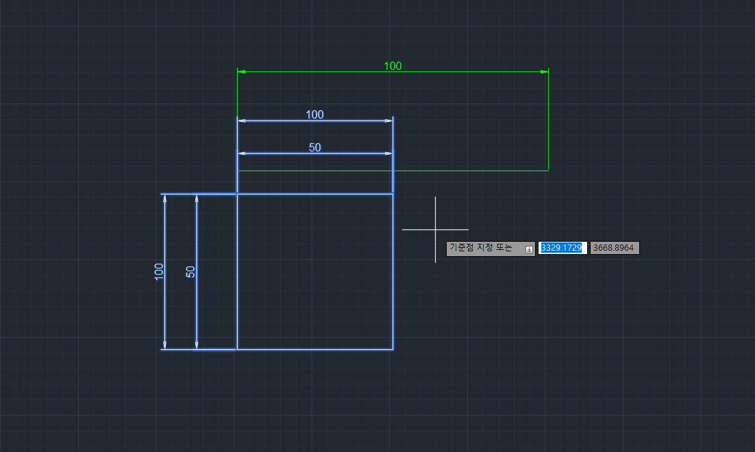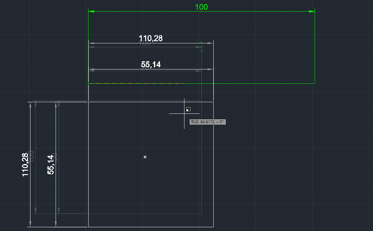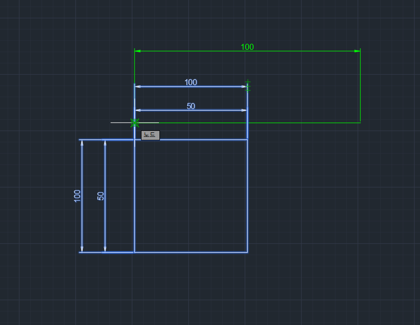 우선 100mm 선(초록색)을 하나 만들어주도록 하겠습니다.