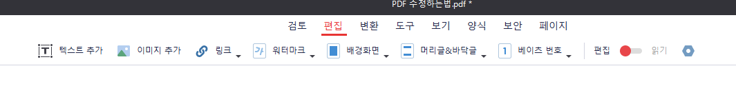 위 그림과 같이 편집탭에서 가장 우측에 (읽기 부분을 편집으로 옮겨줍니다)