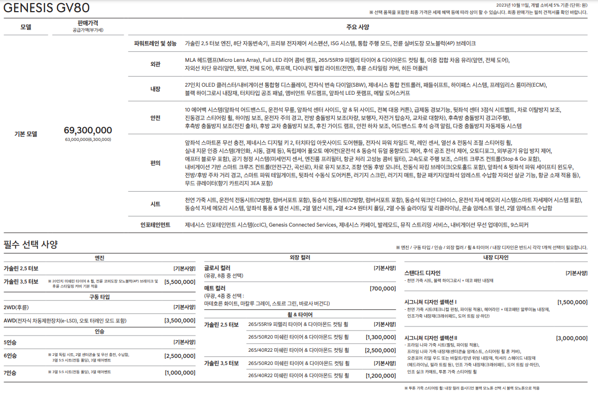 옵션은 여유가 있으신 분들은 풀옵션을 가는 게 맞지만 굳이 필요 없는 옵션까지 넣을 필요는 없으니, 실용적이고, 가성비 있는 GV80 옵션을 알아보겠습니다.