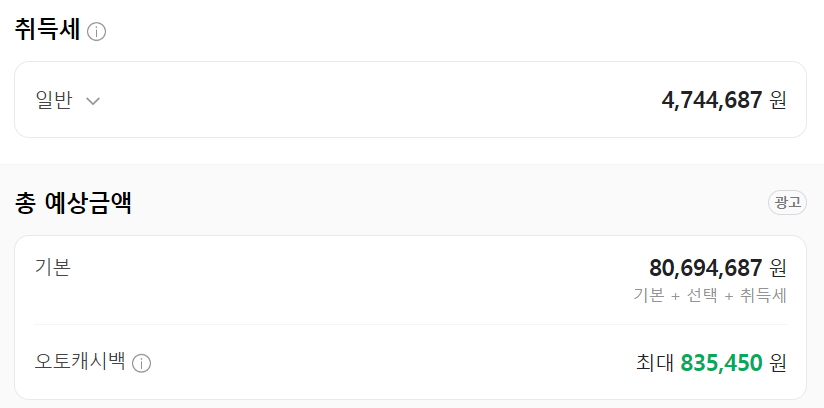 위 추천 옵션을 포함하면 80,694,687원이 나옵니다.
