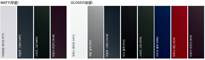 그중 무광은 70만 원을 추가해야 하고, 관리가 힘들기 때문에 유광을 추천드립니다.