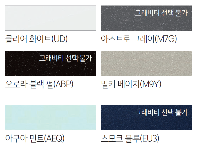 개인적으로 추천드리는 컬러는 첫 페이지에 나온 클리어 화이트가 그래비티와 가장 잘 어울린다고 생각합니다.