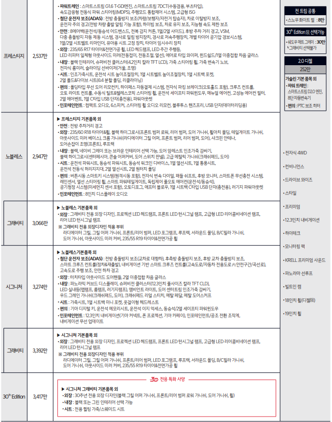 그래서 최고 트림에는 30주년 에디션이 추가되었습니다.