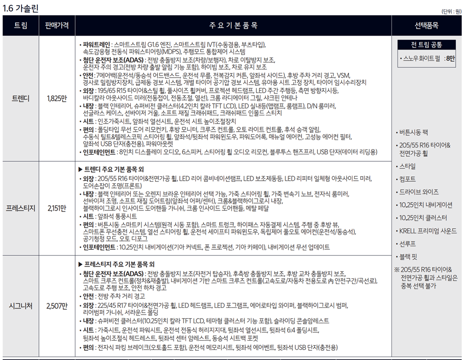 | 2024 셀토스 색상, 옵션 추천 (가성비 옵션) 카탈로그, 가격표 첨부 (2) | 2024.01.24 |