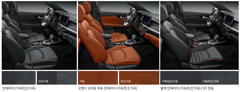 실내 색상은 인테리어 블랙, 오렌지 브라운 투톤 인테리어로 구성되어 있는데, 오렌지 브라운 투톤이 K3와 가장 잘 어울린다고 생각합니다