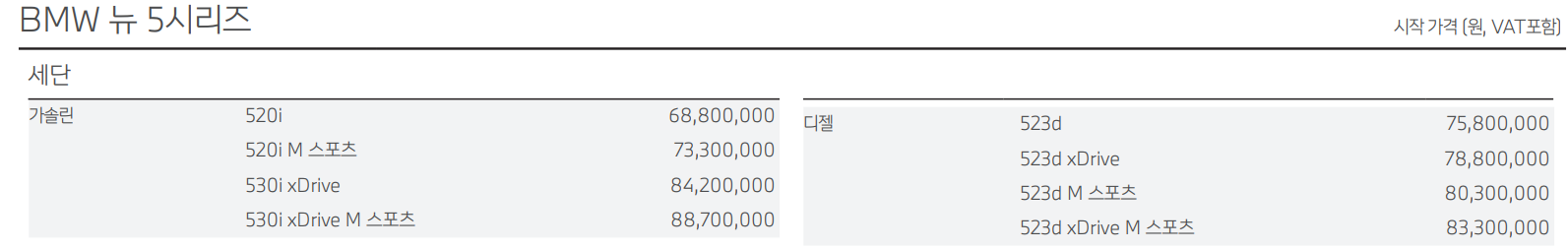 2024 BMW 5시리즈 카탈로그 및 가격표