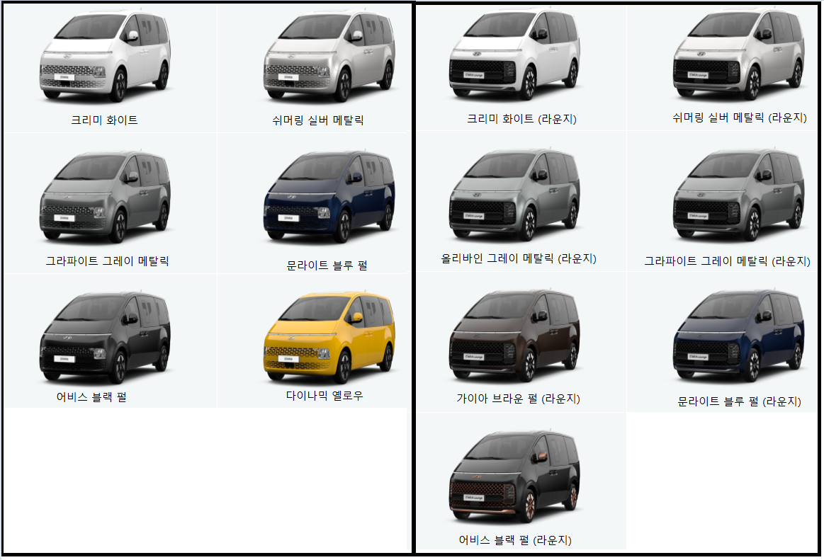 2024 스타리아 하이브리드 색상 추천