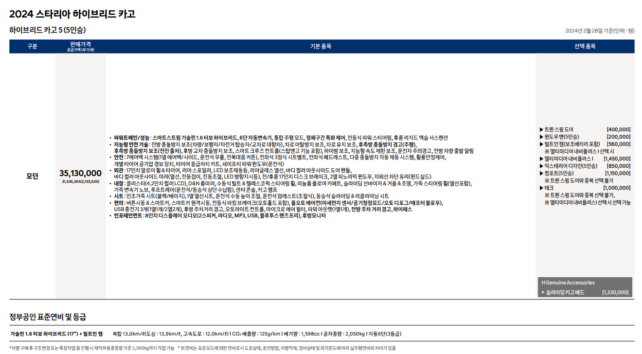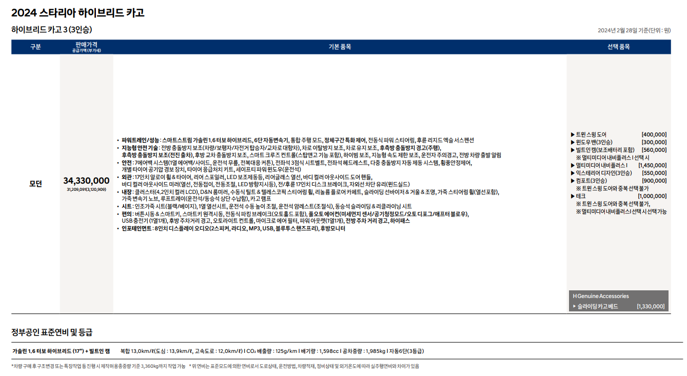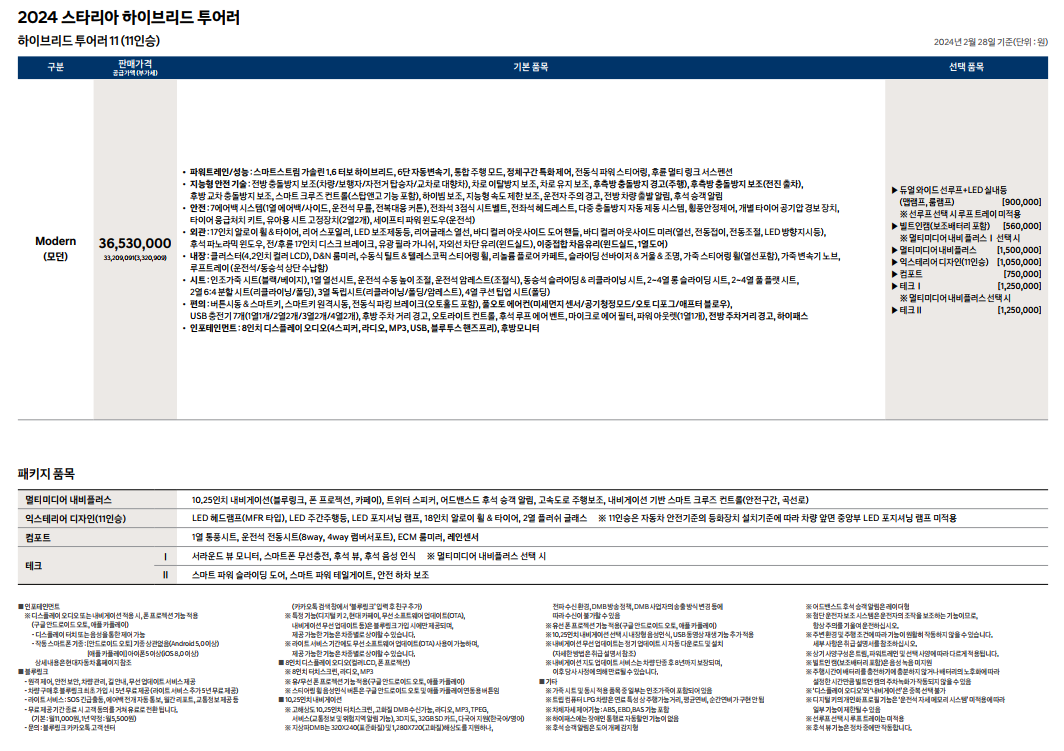 2024 스타리아 하이브리드 가격표 및 카탈로그 첨부