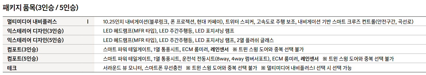 - 컴포트를 선택한 이유 : 전동 트렁크와 1열 통풍시트가 있기 때문에 추가하였습니다.