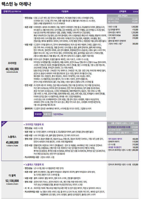 - 추가 옵션은 차량이 크기 때문에 서라운드 뷰는 필수로 들어가야 할 것 같습니다.