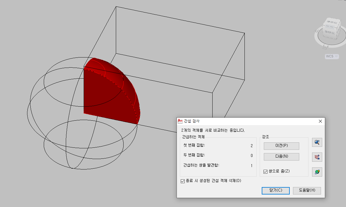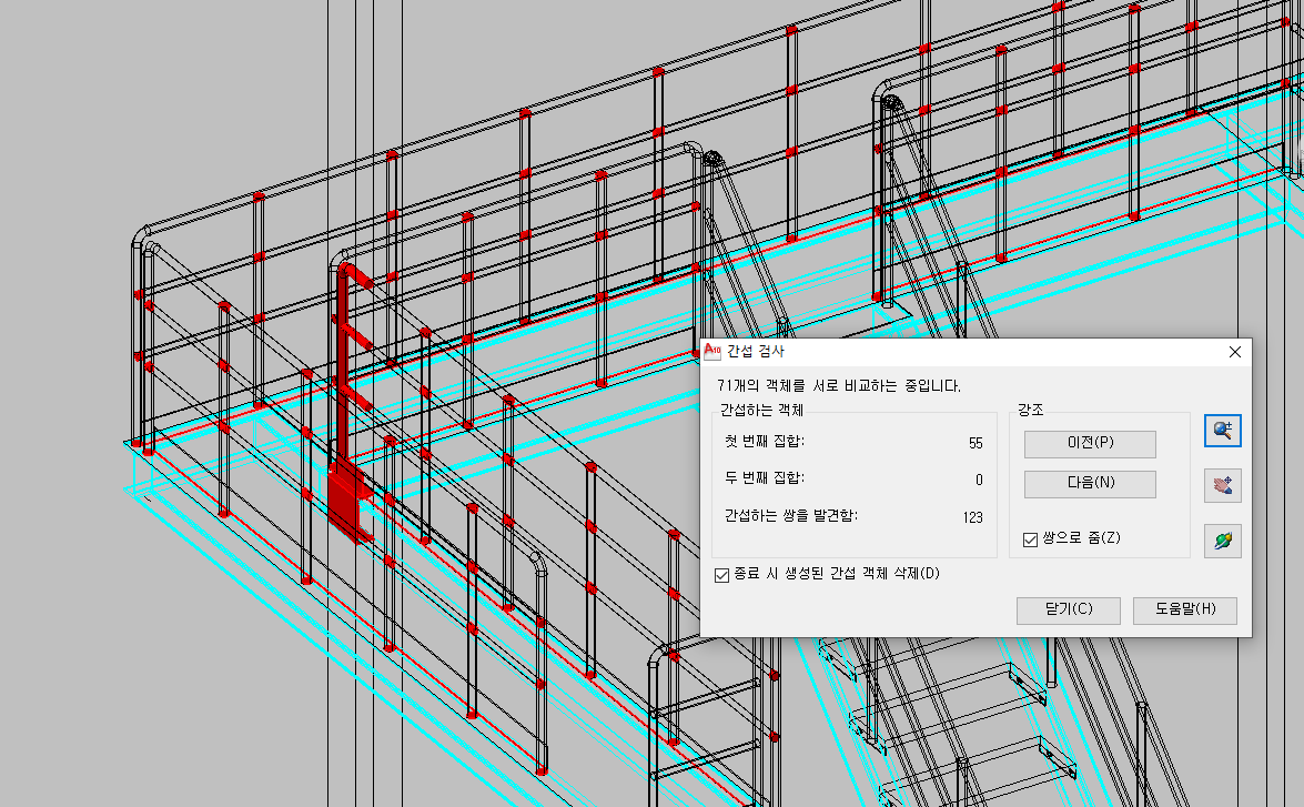 그리고, 이동이나 확대는 간섭 검사 창 우측에 돋보기나 손바닥 모양으로 이동하면서 확인하셔도 되고,