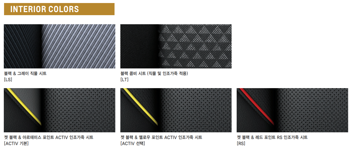 - 쳇 블랙 & 옐로우 포인트 ACTIV 인조가죽시트 : ACTIV 트림 선택 옵션