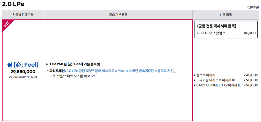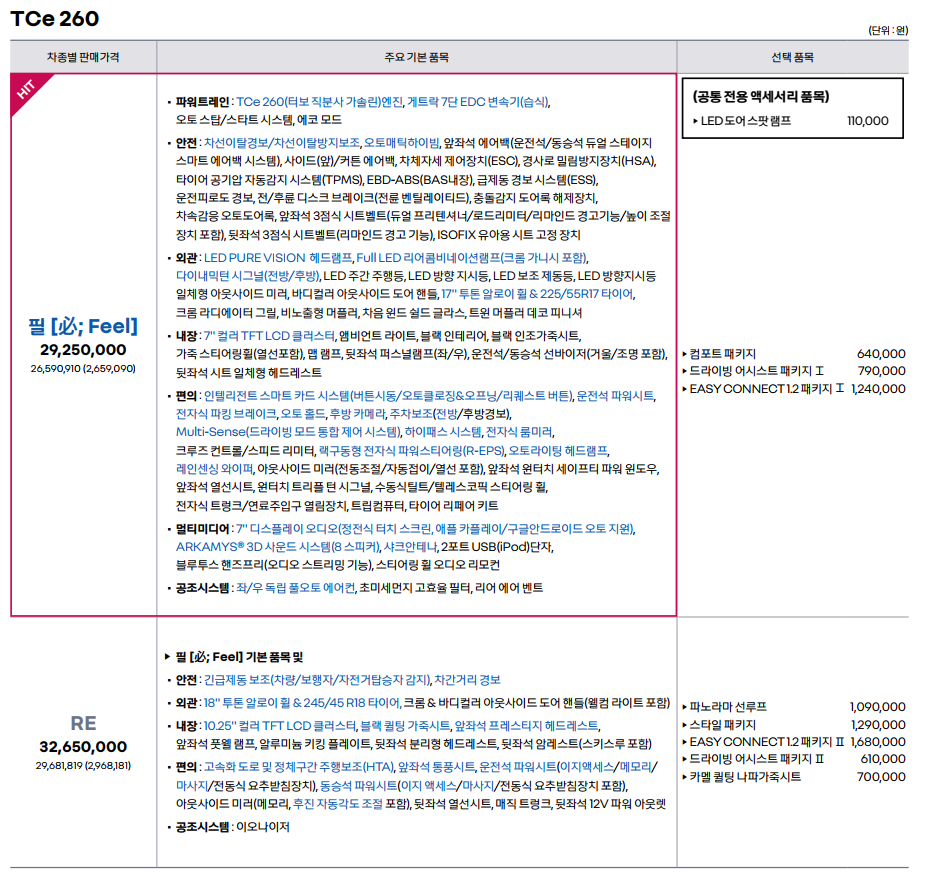 또한 RE 트림을 340만 원을 더 주고 구매할 만큼 메리트 있는 옵션은 없는 것 같습니다.