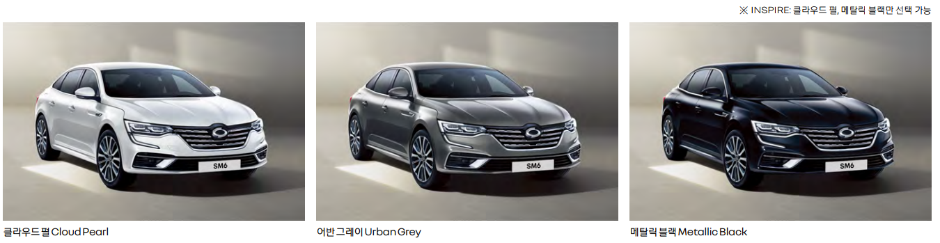 기본트림을 선택하신다면 클라우드 펄 색상이 SM6와 잘 어울리는 것 같습니다.