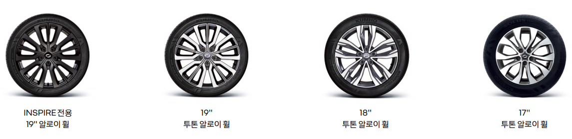 INSPIRE 전용 알로이 휠 은 블랙 색상으로 굉장히 멋지게 디자인되어 있습니다.