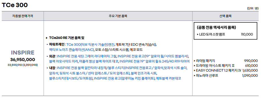 또한 RE 트림을 340만 원을 더 주고 구매할 만큼 메리트 있는 옵션은 없는 것 같습니다.