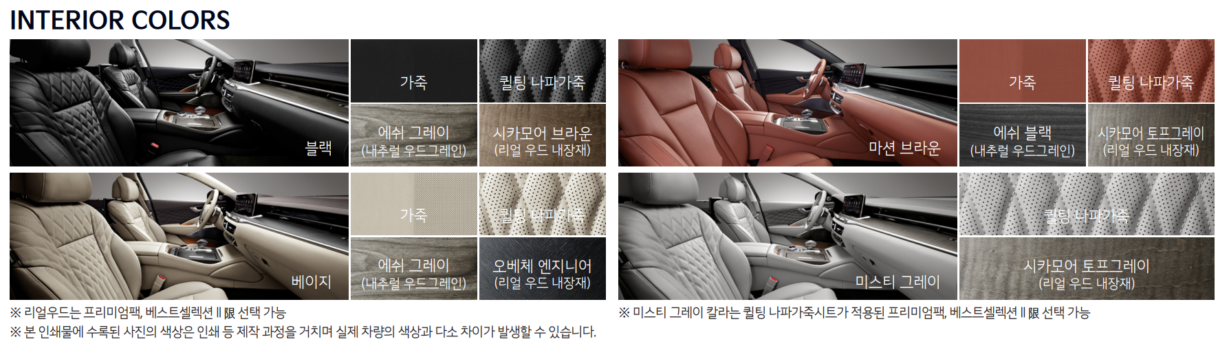 블랙, 마션 브라운, 베이지, 미스터 그레이로 크게 4가지 내장 색상으로 구성되어 있습니다.