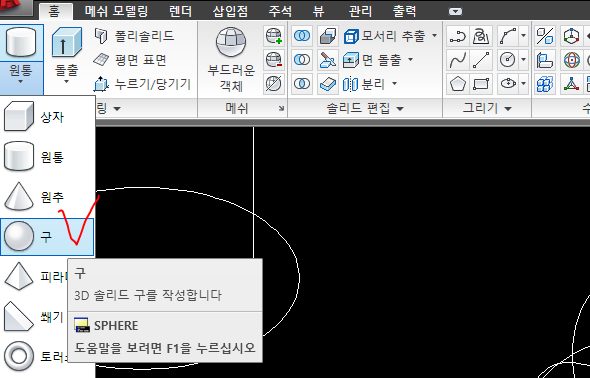 구 클릭하시고, 반지름인 25를 입력하고, 엔터! 누르시면 됩니다!