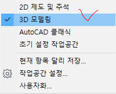 우선 작업 공간을 3D 모델링으로 변경해 줍니다!