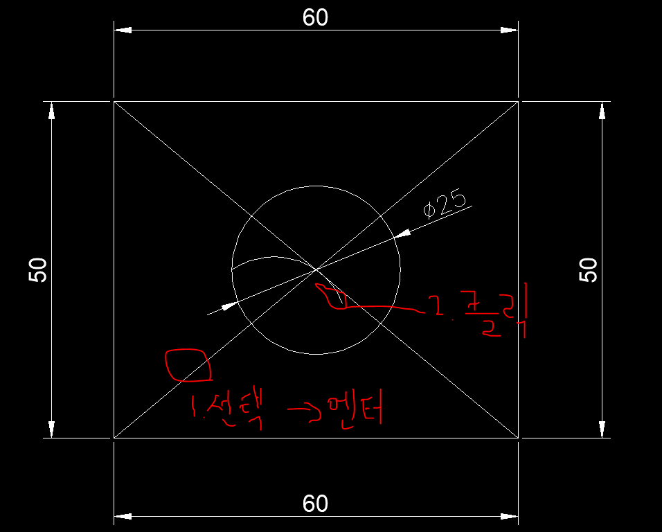 저번 1강에서는 선과 원형 & 2강에서는 치수선 뽑는 방법을 배웠죠~ (응용할것이니, 안보신분들은 꼭 보고오세요!)