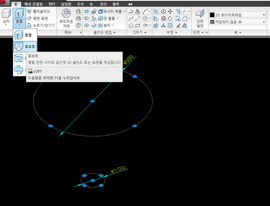 이제 안쪽에 100파이짜리 원을 선택하시고