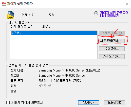 이 상태에서 명령어 PAGESETUP(페이지셋업) 엔터!!