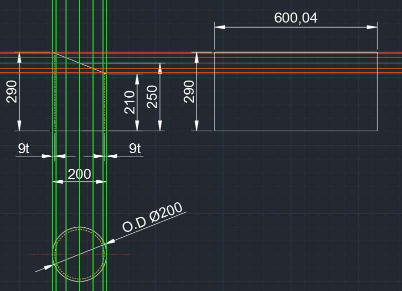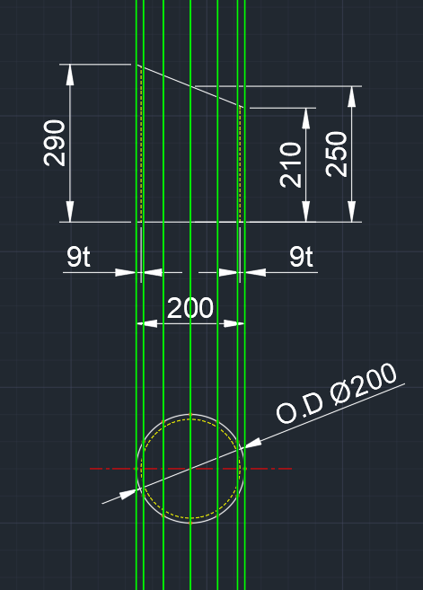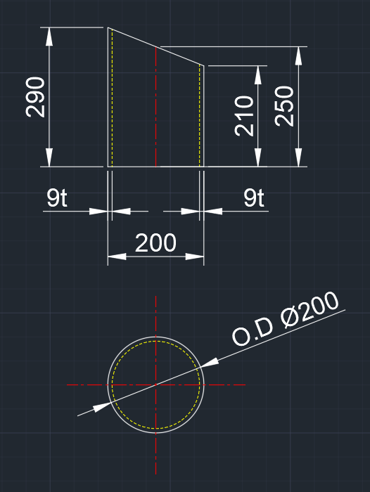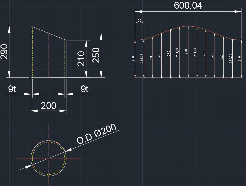 이제 아주 간단한 계산을 해야하는데요,, 이유는 지름이 200인 단관을 펼친 그림을 그려야하기 때문입니다!