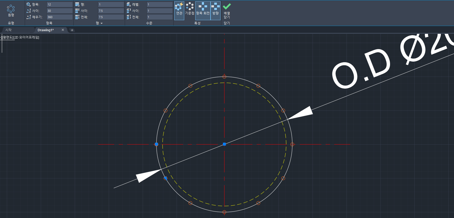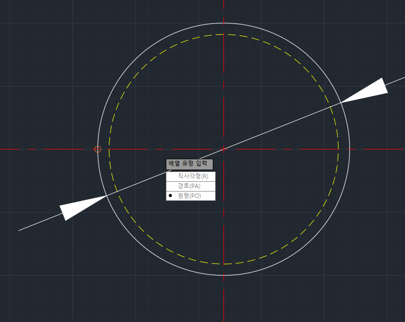 단축키 AR 엔터 -> 주황(위사진에서 그린 도형) 선택 -> 엔터 -> 원형 엔터 -> 중심선 클릭!