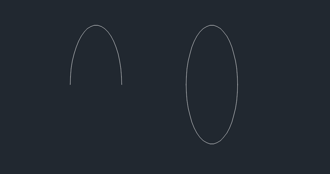 하지만 굳이 호 선택을 안 하더라도 트림(TRIM) 기능으로 절단을 할 수 있으므로 기본 타원을 만드는 게 더 간단한 방법입니다.